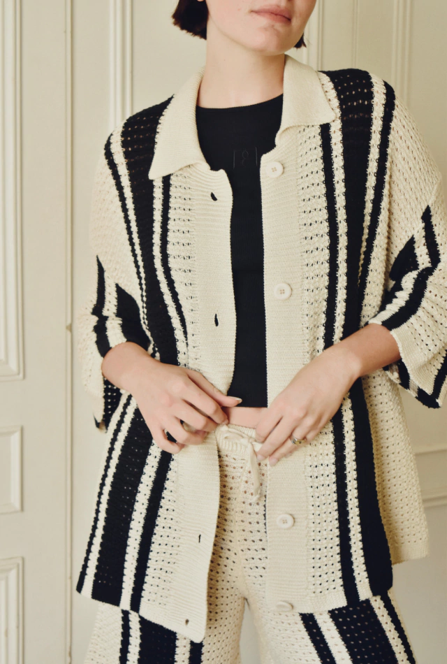 PILAR BA TIP:  Es el complemento ideal de la Chaqueta Grazie lisa o rayada, ya que están confeccionados en el mismo tejido.