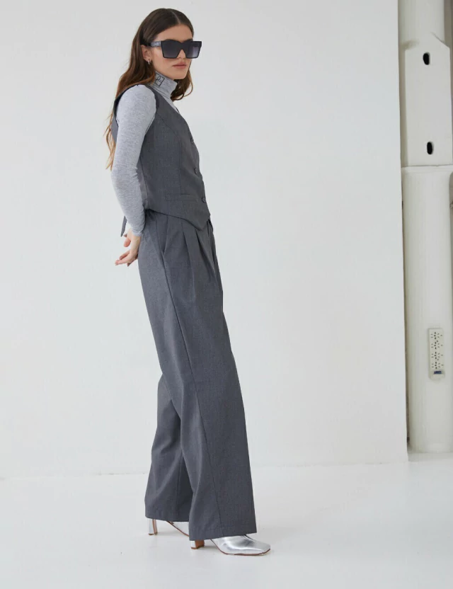 El pantalón SIMPLE està confeccionado en textil sastrero. De corte recto que se estrecha levemente hacia abajo. Posee dos pinzas profundas en cada pierna del delantero, bolsillos laterales y dos bolsillos ojales en la espalda. La cintura tiene elástico en la parte de atrás y cruce con dos botones en el frente.