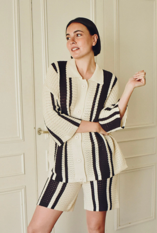 PILAR BA TIP: Es el complemento ideal de la Chaqueta Grazie lisa o rayada, ya que están confeccionados en el mismo tejido.