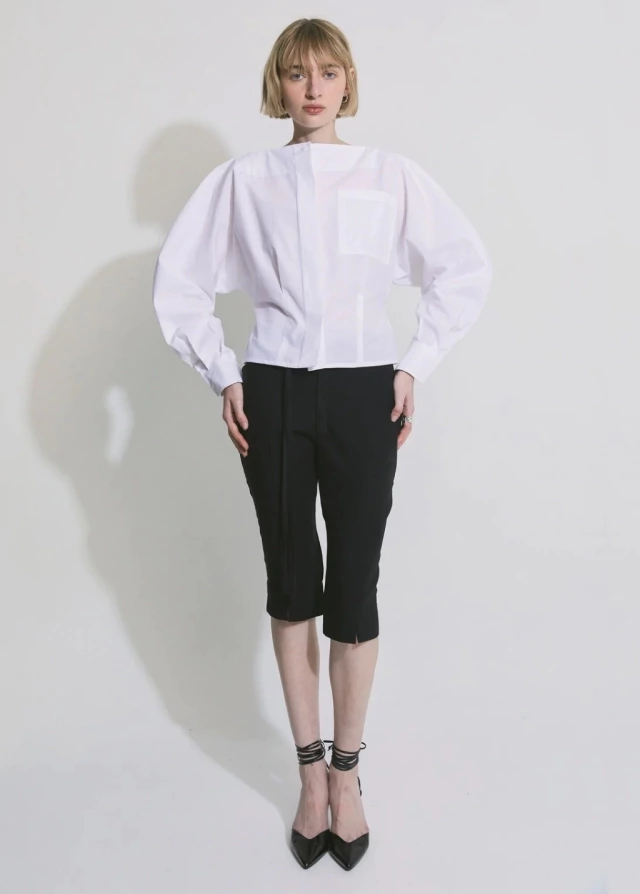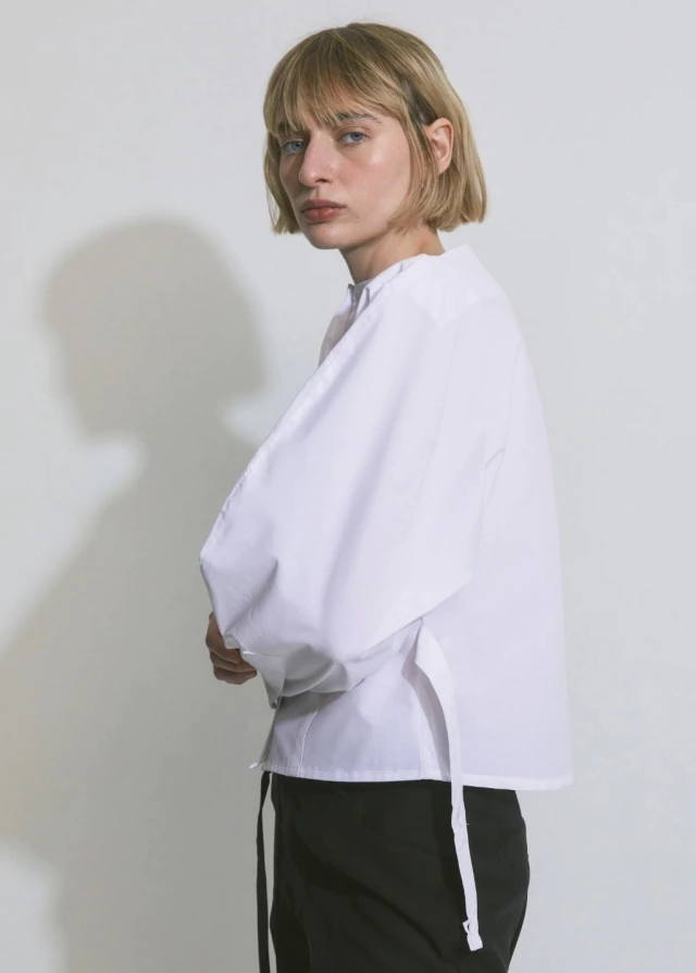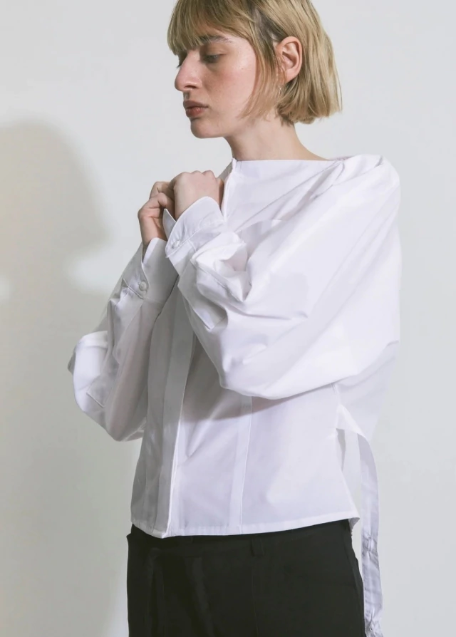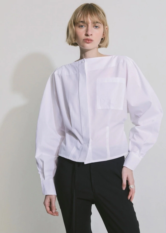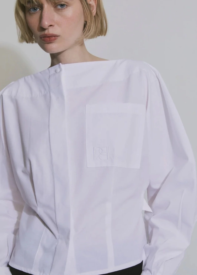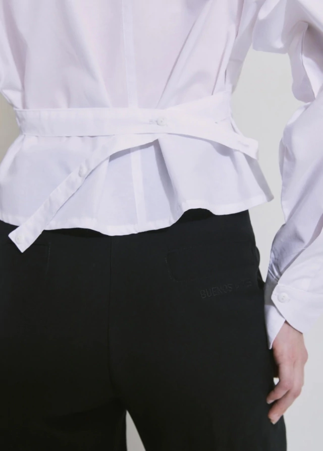 La camisa EMBLEMA está confeccionada en poplin escoces. De corte recto y moldería oversize. Posee dos bolsillos delanteros con tapas en diagonal ( uno tiene el logo de marca bordado ) con acceso frontal mediante botones a tono.