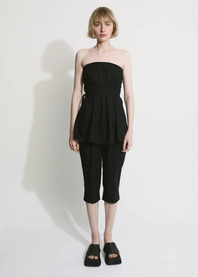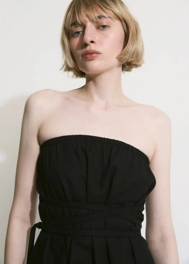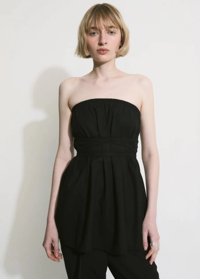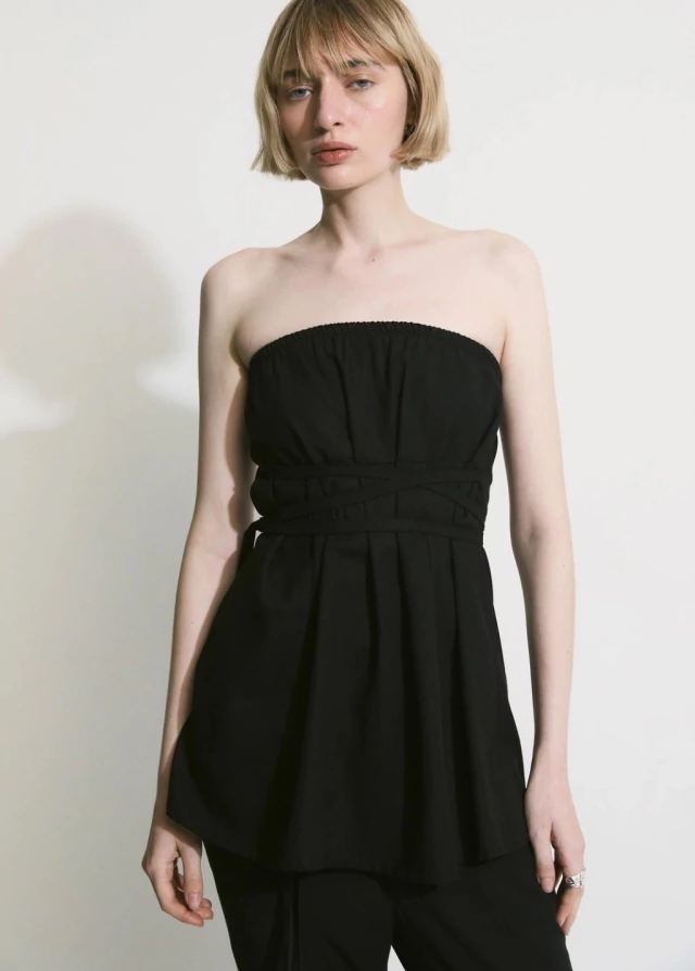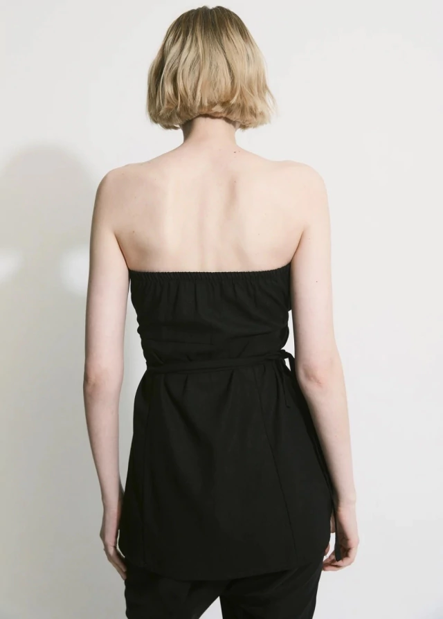 La blusa CUADRA está confeccionada en lino mezcla. Su formato es strapless con elástico en la parte superior del busto y tiene tiras largas en los laterales que permiten que se pueda anudar de diferentes formas, sujetándolo para atrás, adelante, cruzado, en el cuello o como mas te guste generando diversos estilos y usos porque puede transformarse hasta en un mini vestido. Pensada en set con varias prendas de abajo si quiere usarse en complemento.