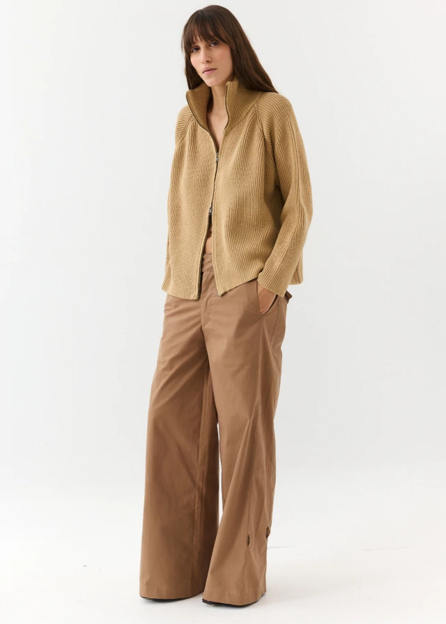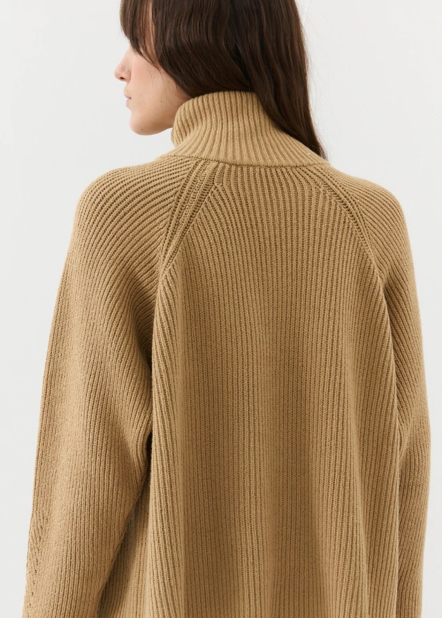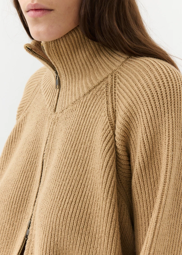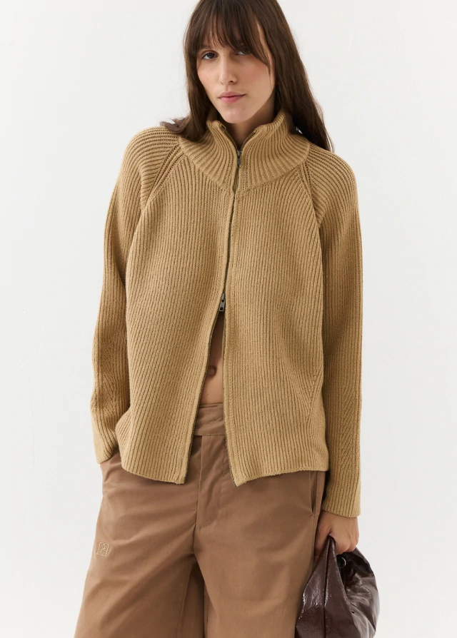 La campera IMPETU a diferencia del año pasado esta tejida en algodón, es un tejido grueso y pesado. Es de corte recto , silueta oversize y manga raglán que se estrecha más en el puño. Realizada con punto acanalado, con diferentes variaciones en la manga , cuello y terminaciones. Posee cuello alto y cierre de doble camino para usarse de varias formas.